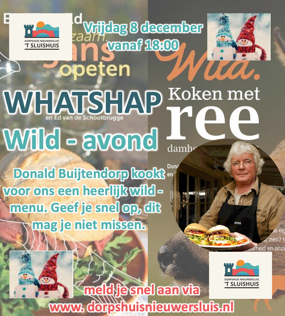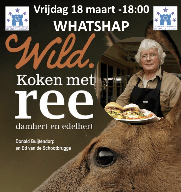 De WhatHapp kok is deze keer 'DE' jager, schrijver, auteur en kok die alles kan met WILD. En natuurlijk in Nieuwersluis woont, Donald Buitendorp